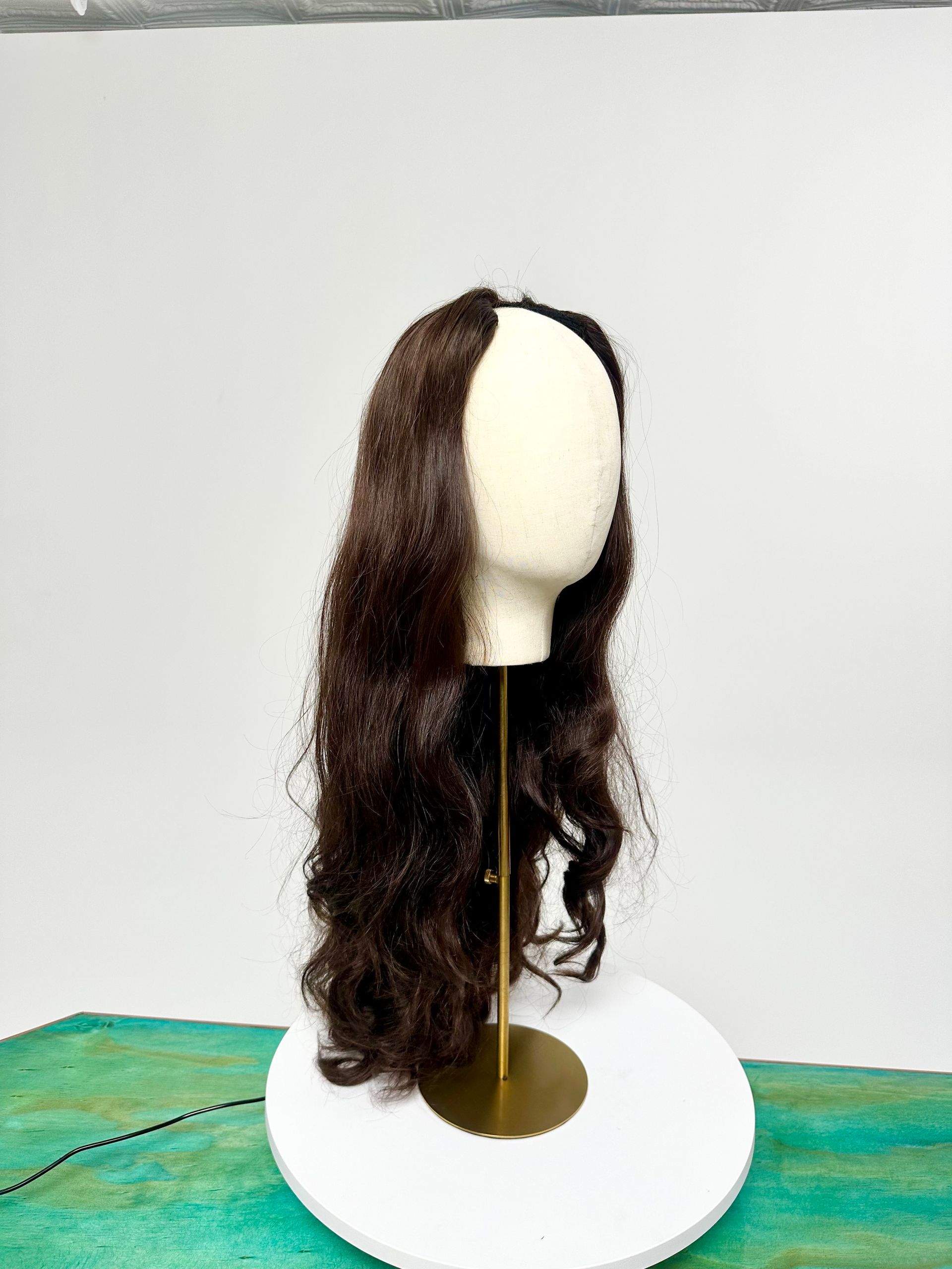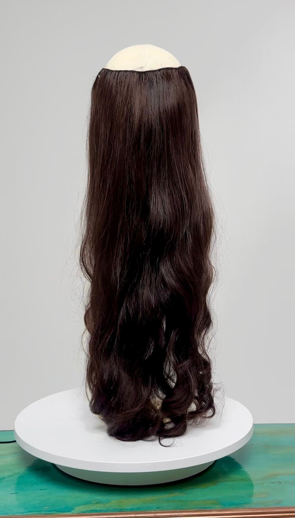 V-Shape Topper, Dark Brown 26” inch, 180% Extra Thick, 12A, REMY, Indian, Double Drawn