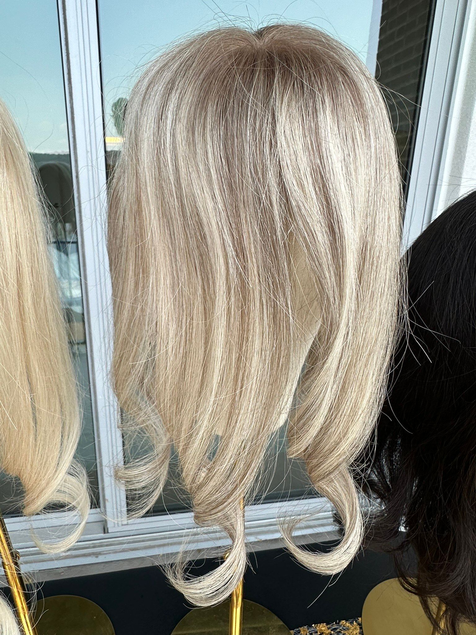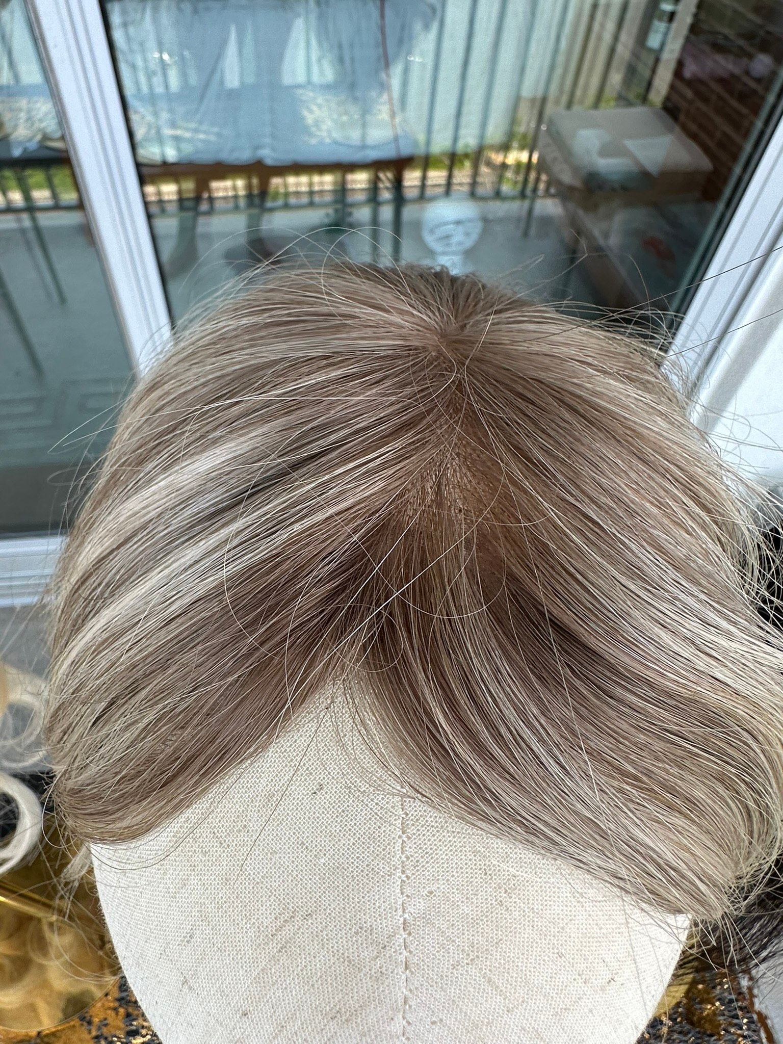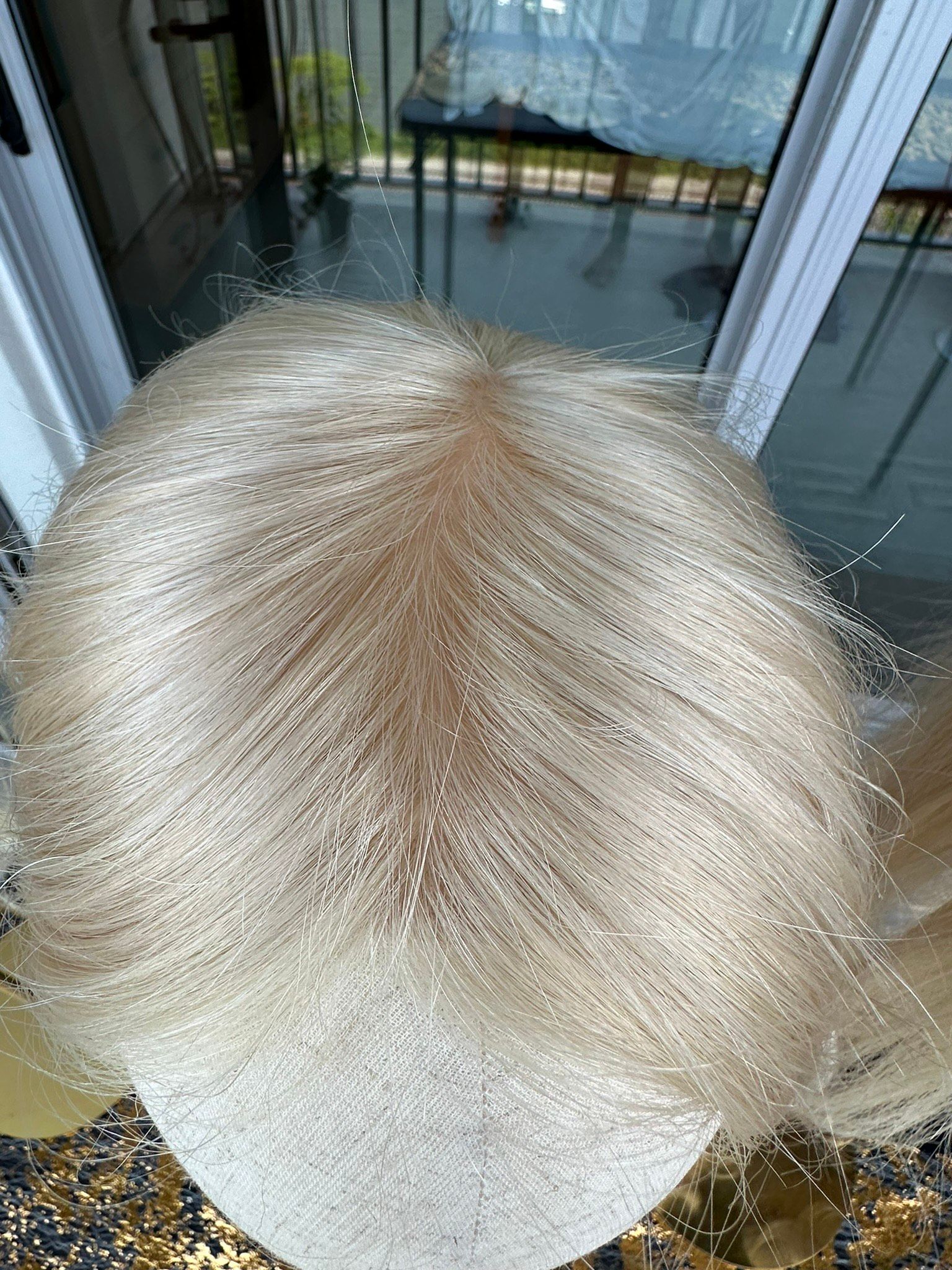 Mono Topper 4x5 Ash Blonde 16” inch 100% Ultra Light, 12A, REMY, European, Medium Coverage