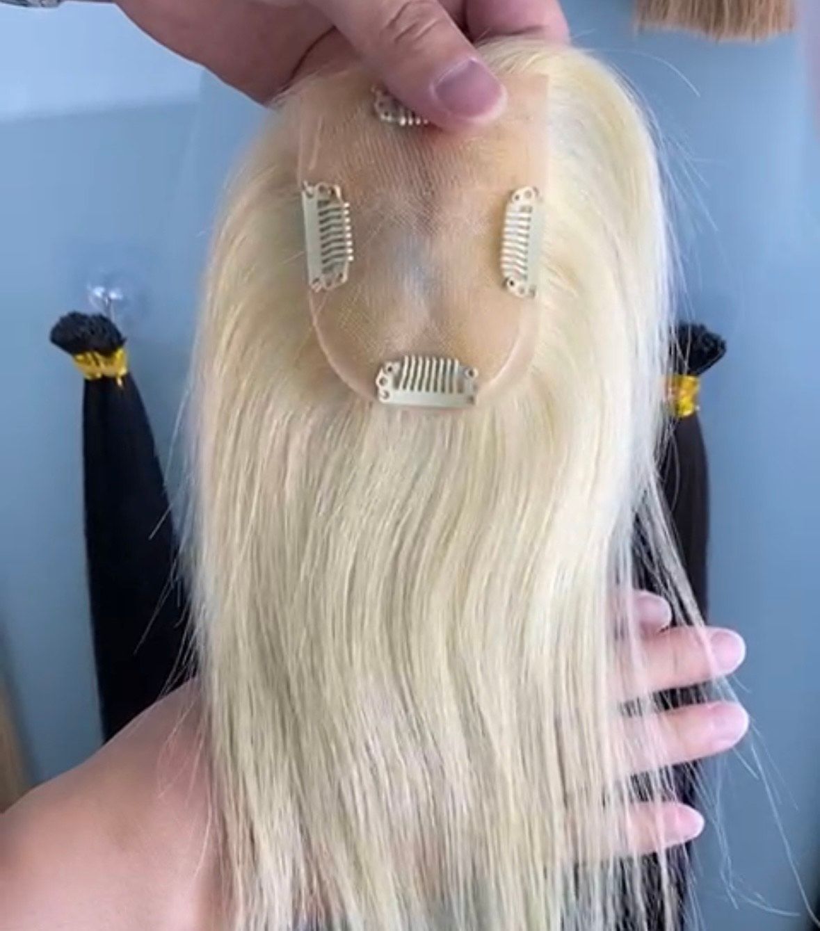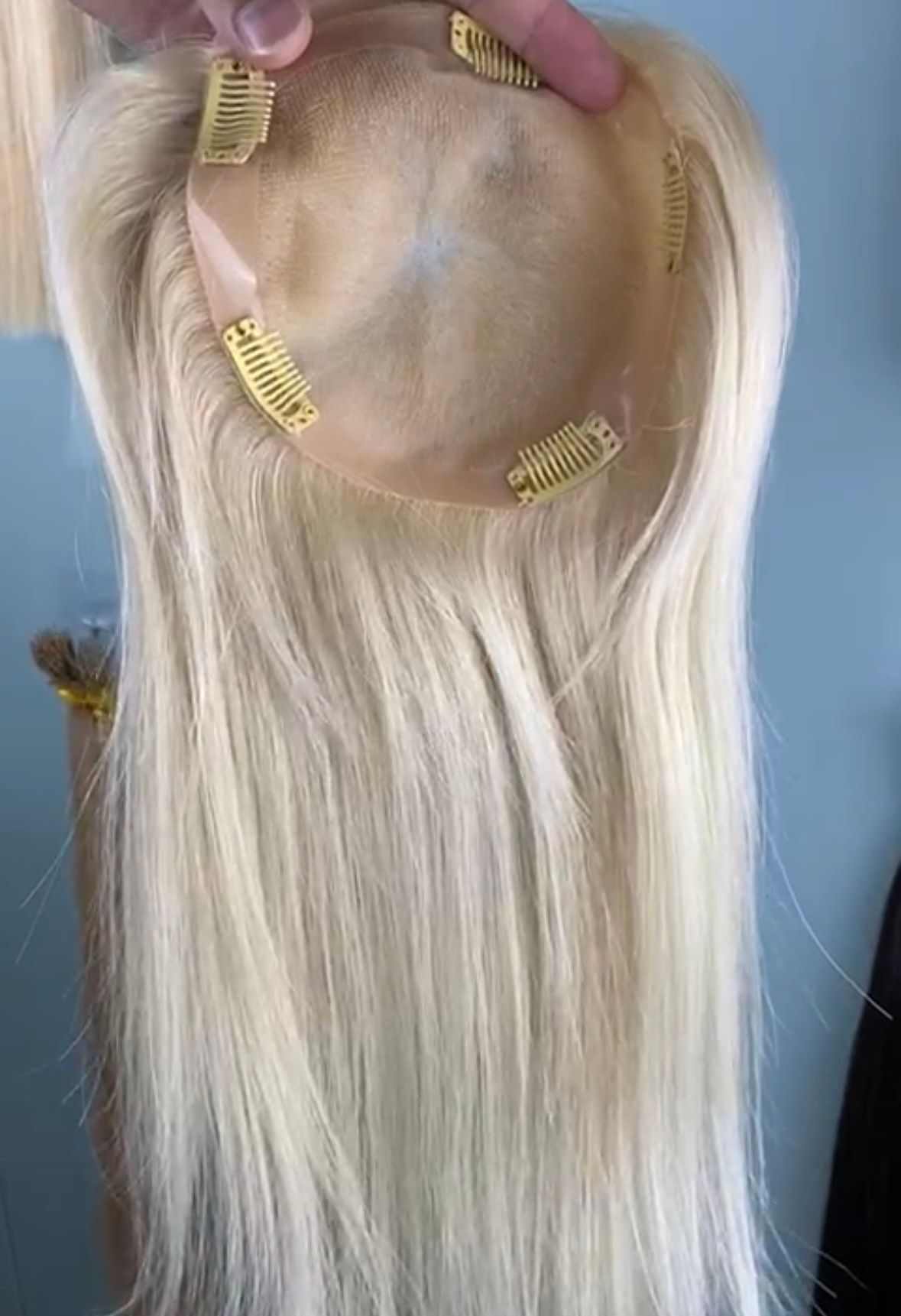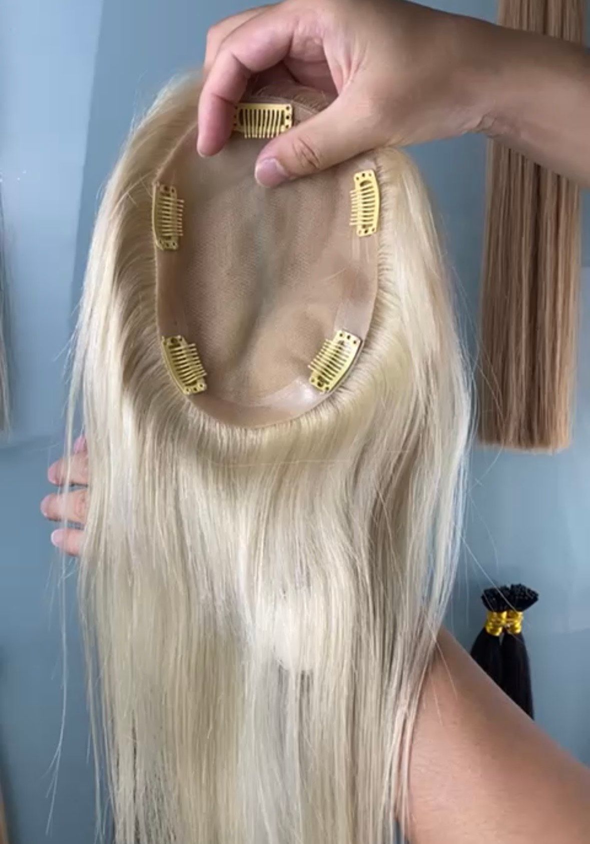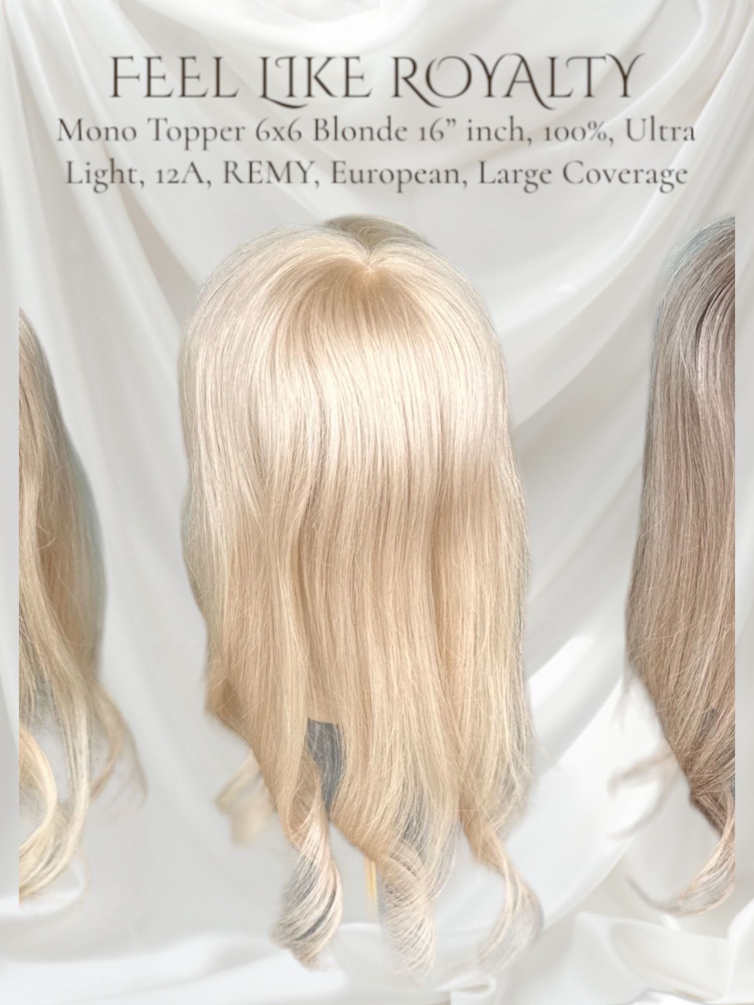 Mono Topper 6x6 Blonde 16” inch, 100%, Ultra Light, 12A, REMY, European, Large Coverage