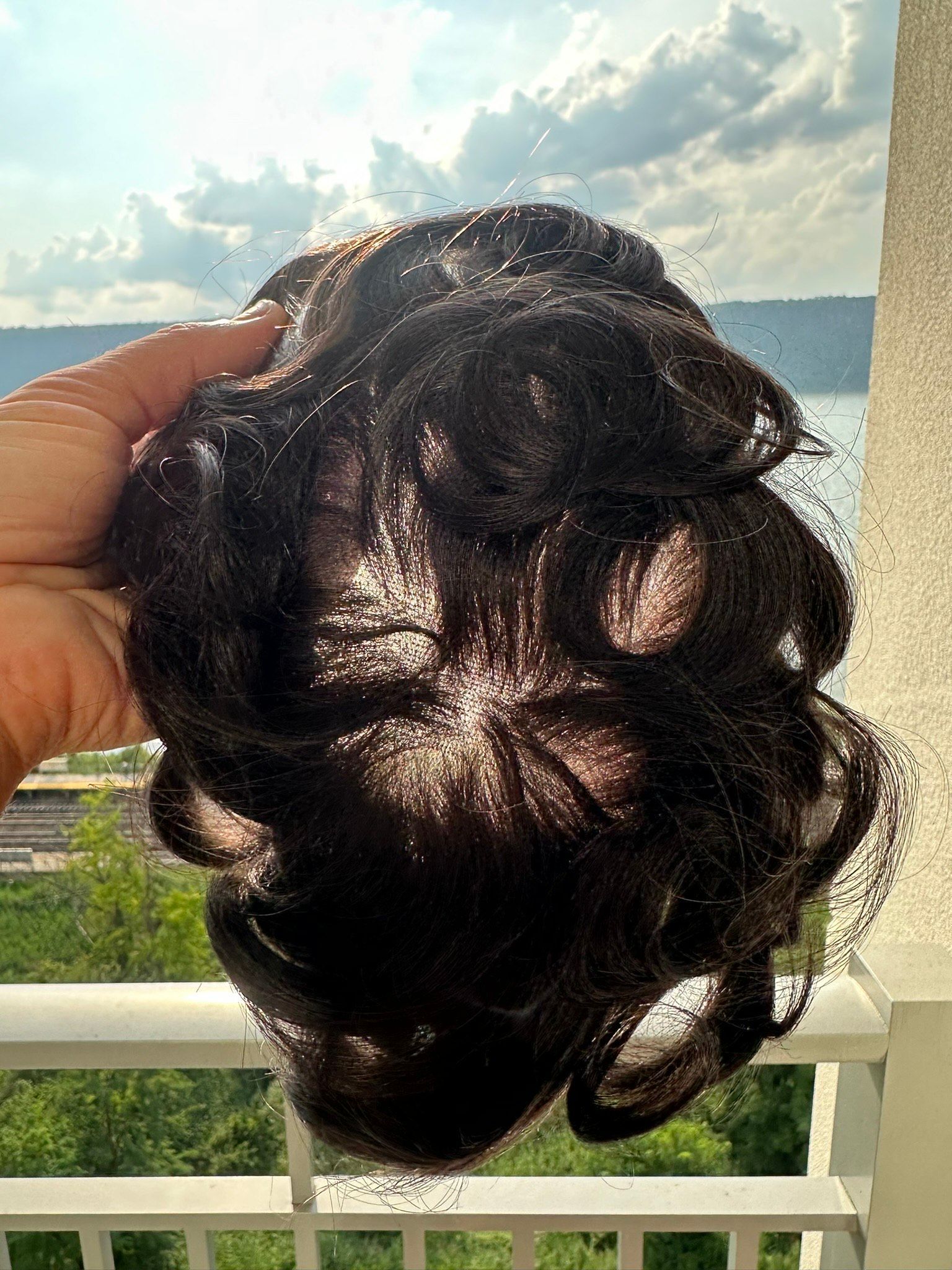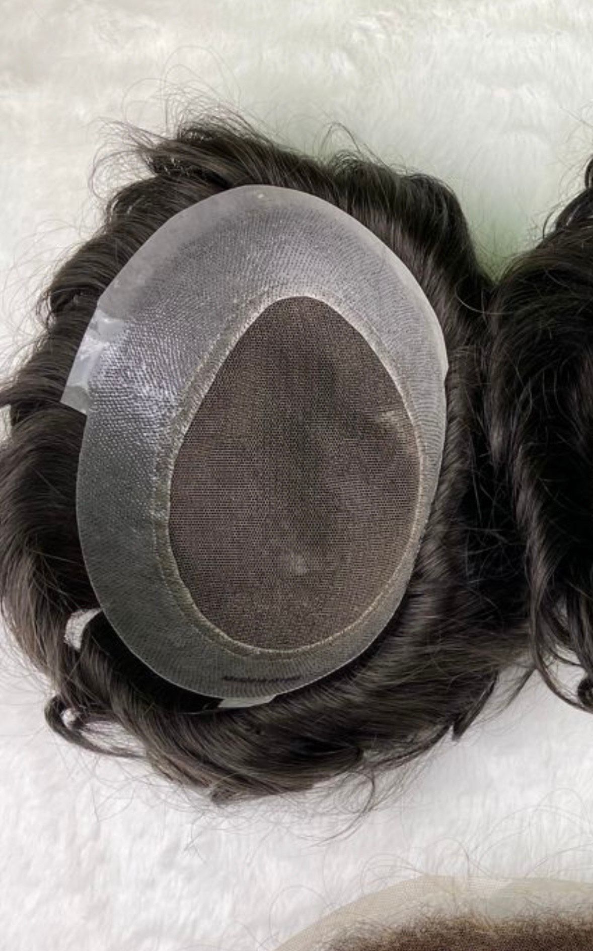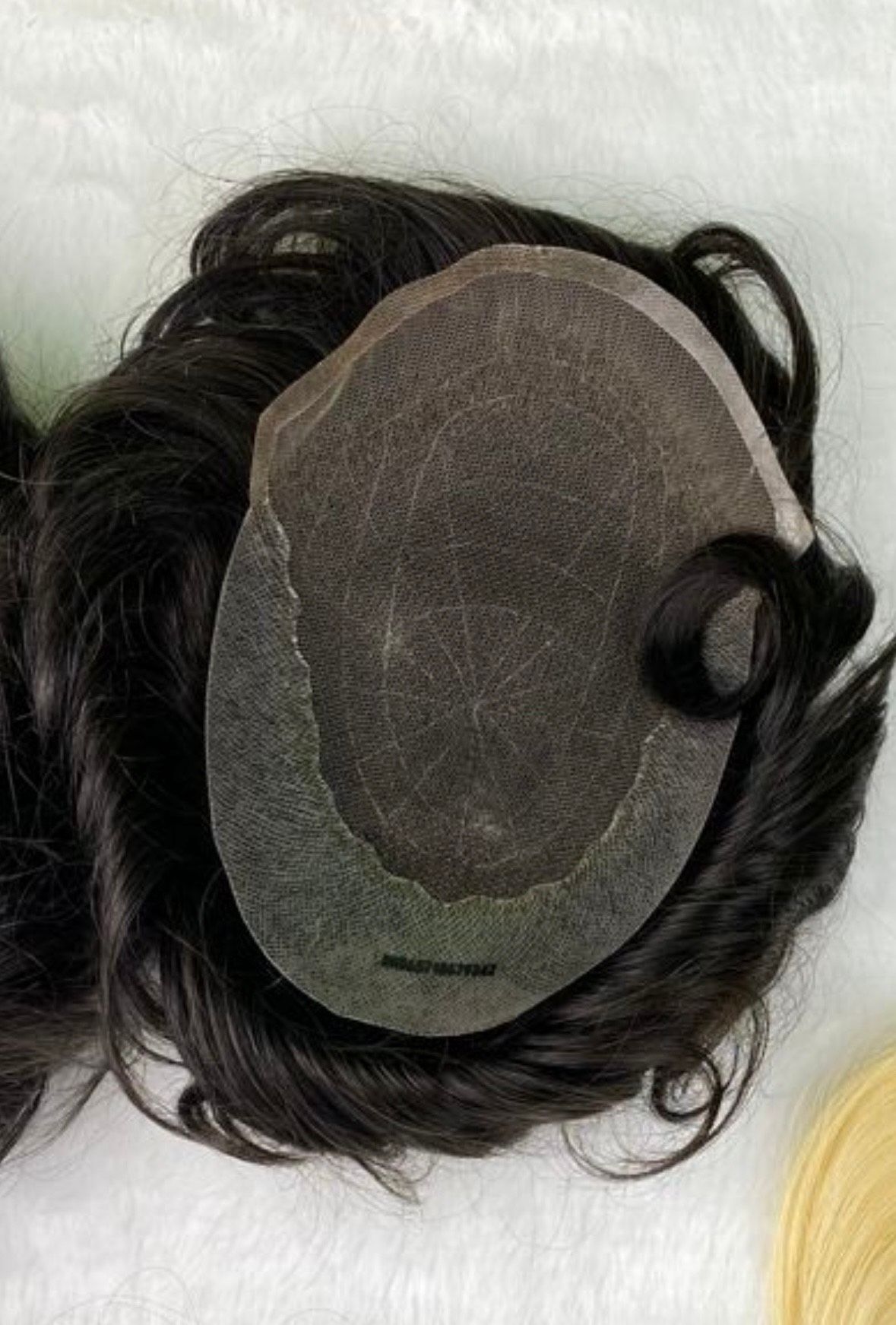 Breathable Toupee, French Lace Front and Center, 6” Thin Skin Back & Sides, Natural color, Natural Human Hair Wave 5×7 inch, Hair Style -Free Style, Density- Medium Light to Medium 115%