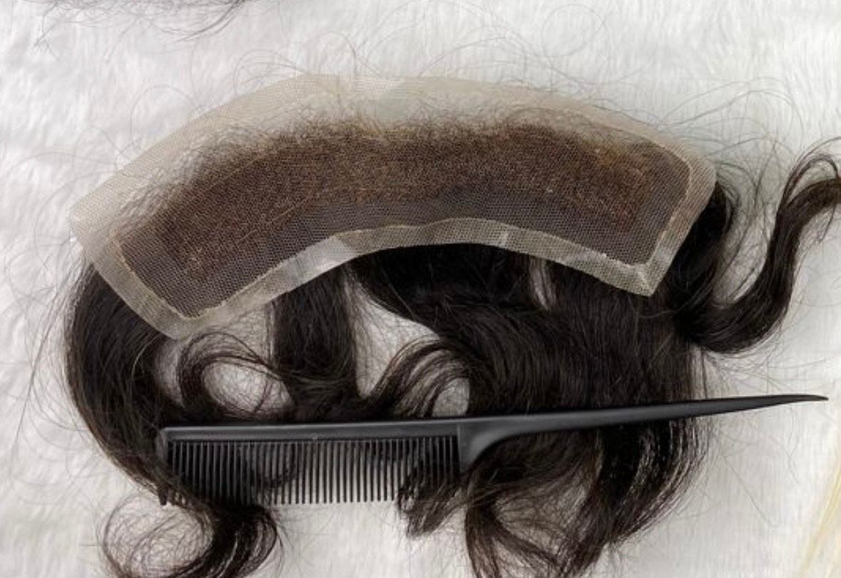 Frontal Hair Patch- Full Swiss Lace With PU, Polyskin, 2.5cm×16cm (1”x6.3”) Size to cover just the front hairline, with 1.5" width at the peak of the hairline for a natural look. Natural color, Density- Light