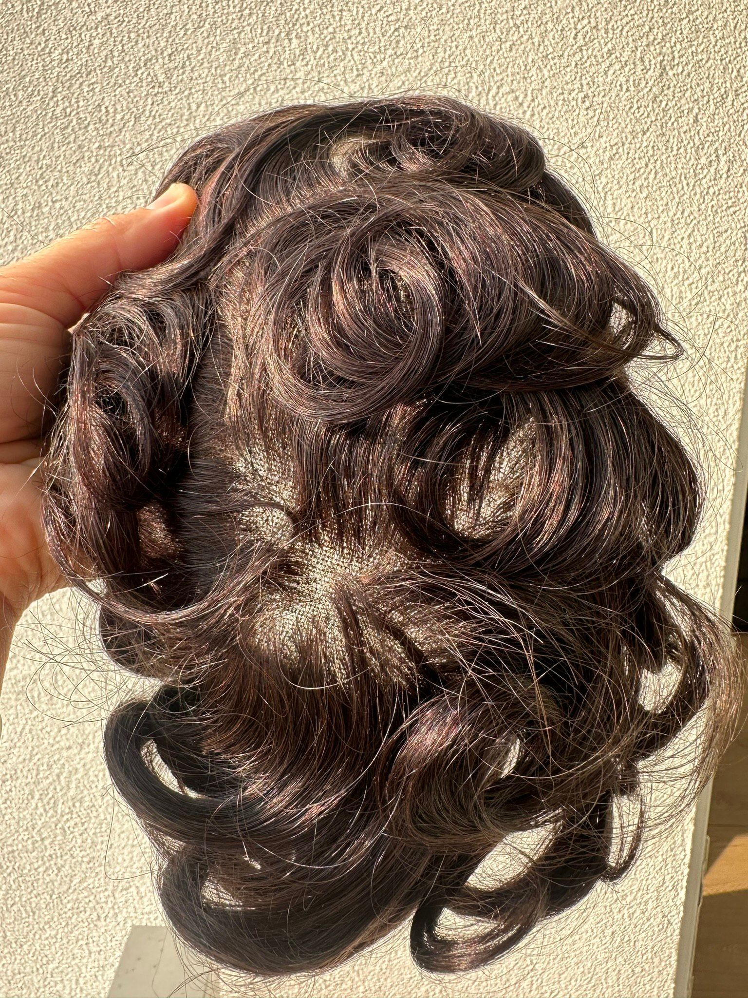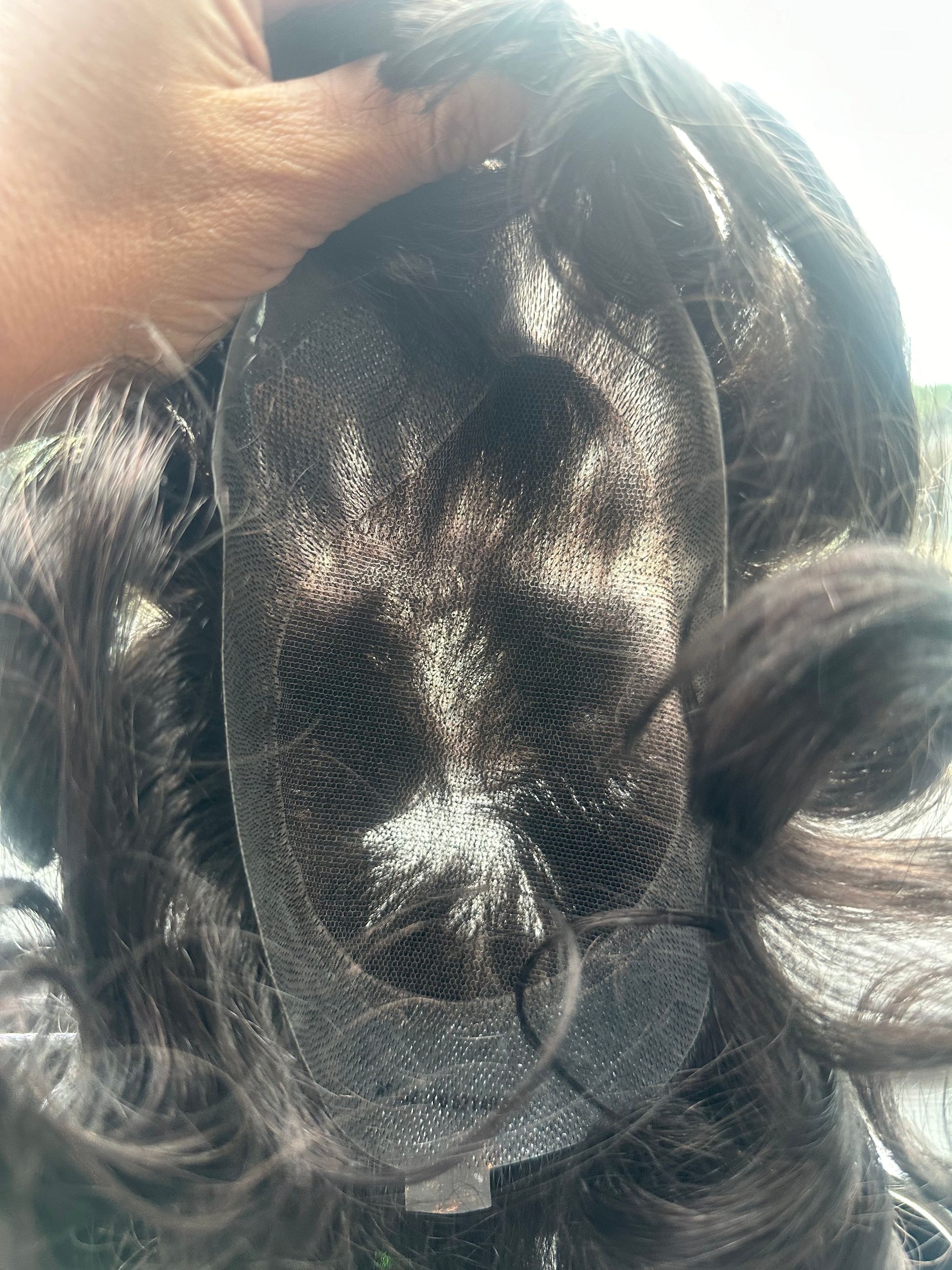 Breathable Toupee, French Lace 6” with 1 1/4” Polyskin in perimeter, Natural color, Natural Human Hair Wave, 15×20cm (5.91”x7.87”) Hair Style -Free Style, Density- Medium 130%