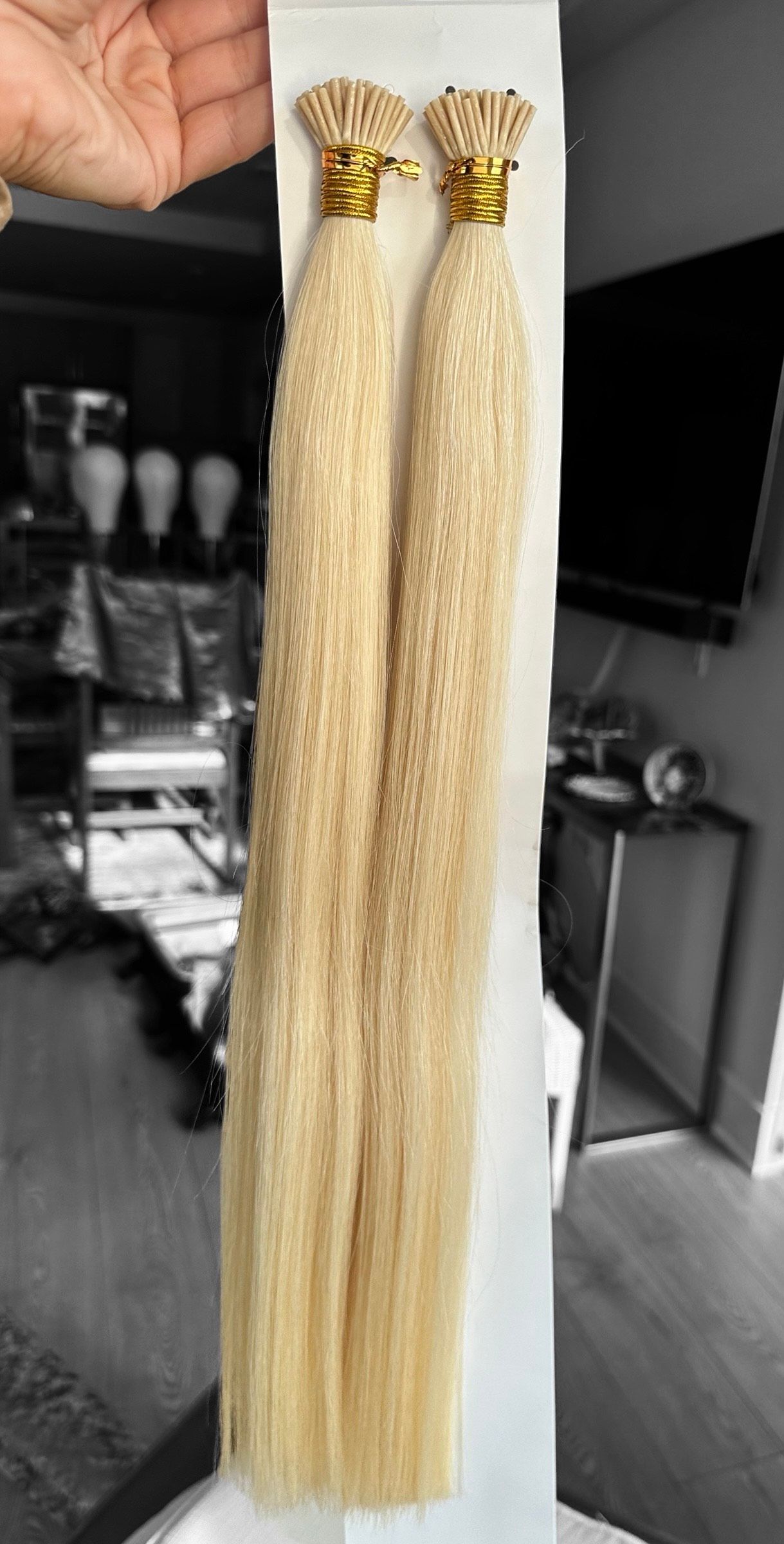 Pre- Bonded Keratin I Tip, 18” #60 Blonde, Silky Straight Double Drawn, Extra Thick, European Russian Virgin Remy Human Hair Extension I F U V Y K Tip Available