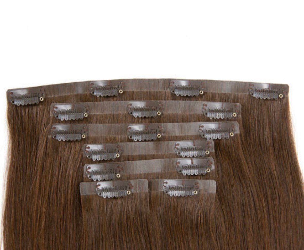 Ultra Seamless Silk Clip-In 16” Light Brown, Undetectable in Thin Hair, Silicone Skin Weft, Ultra Comfortable, Thick or Thin, Lightweight European Russian Virgin Extension REMY, No Awkward Seams, Easy To Wear.