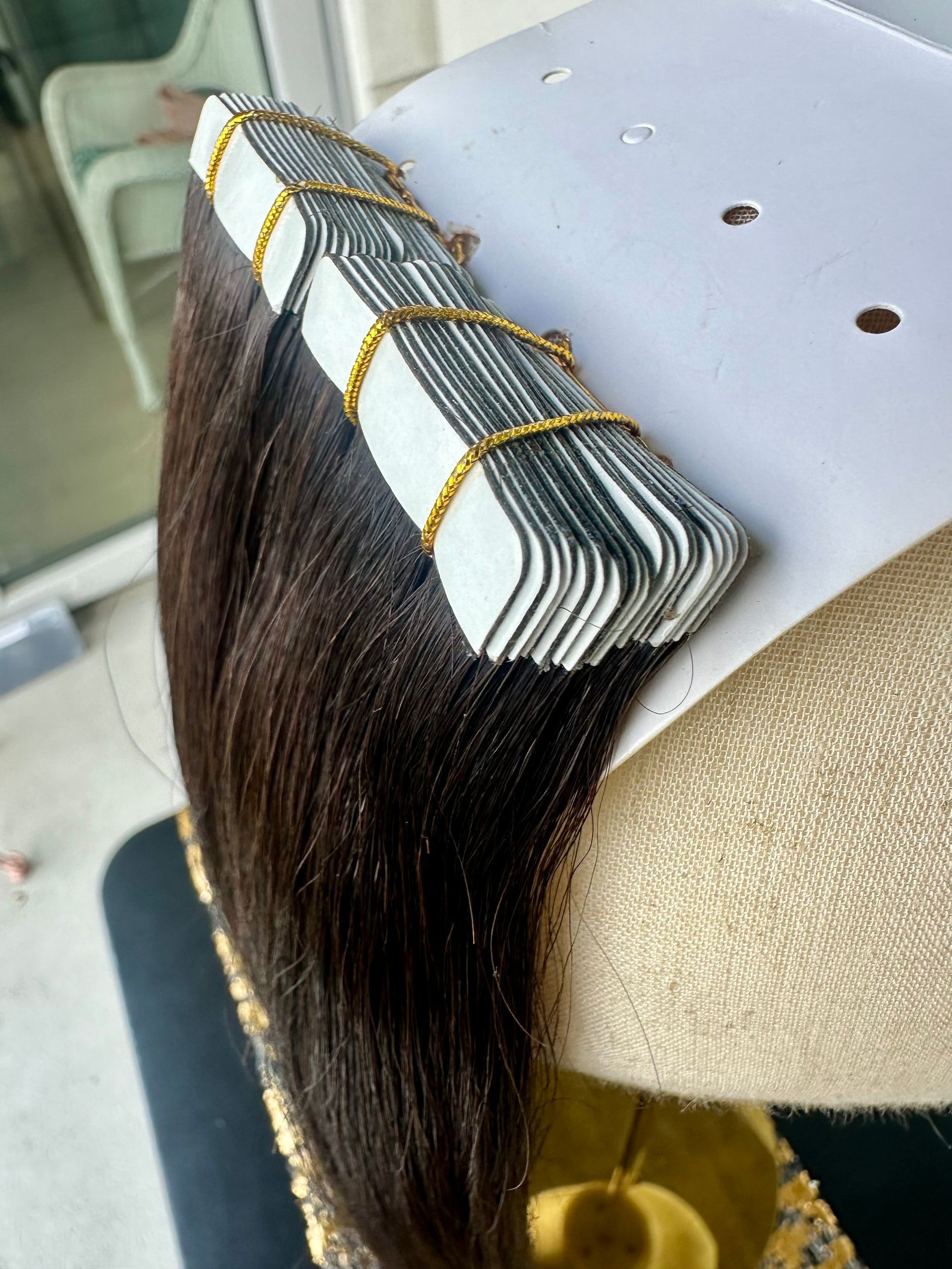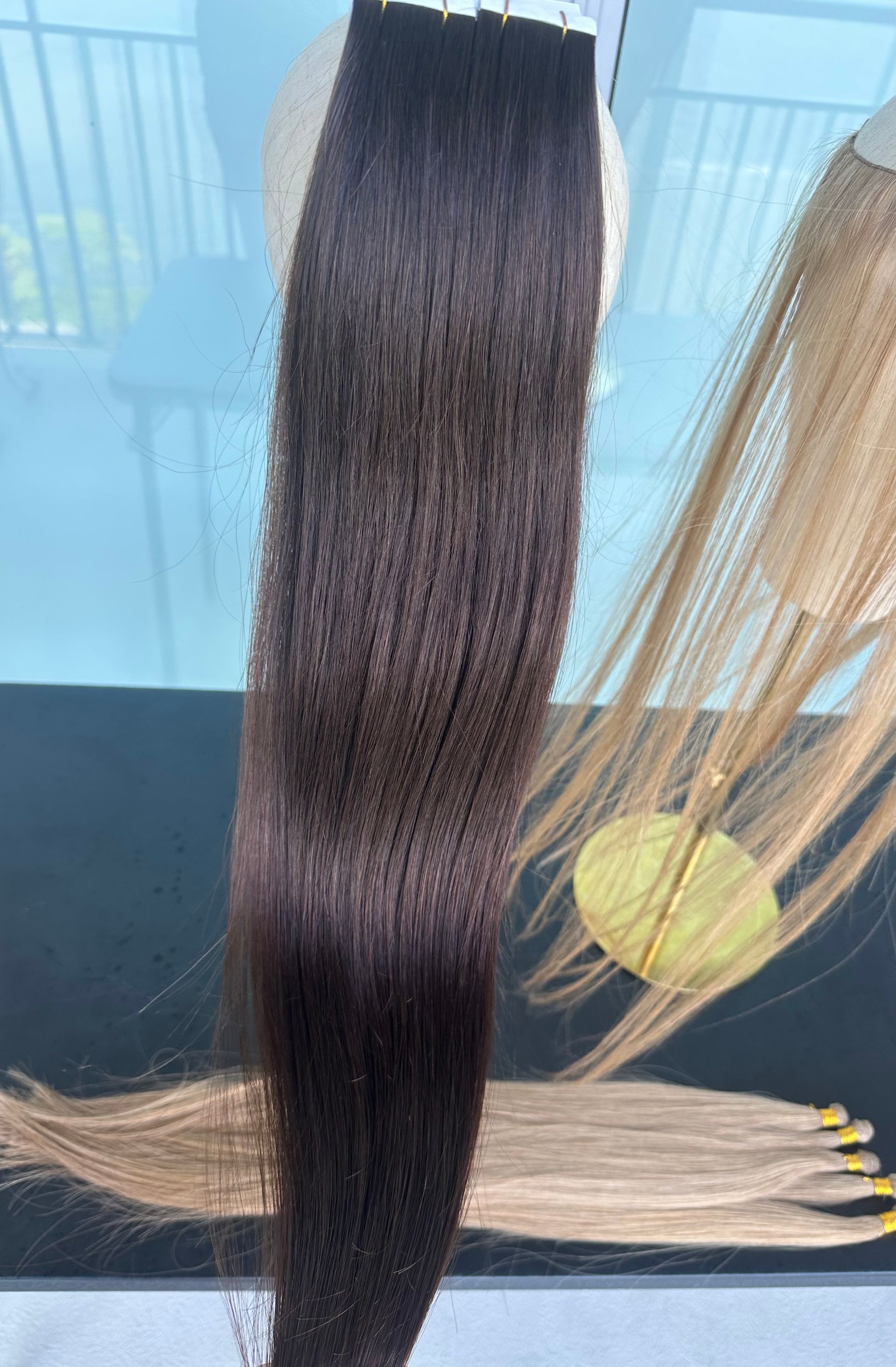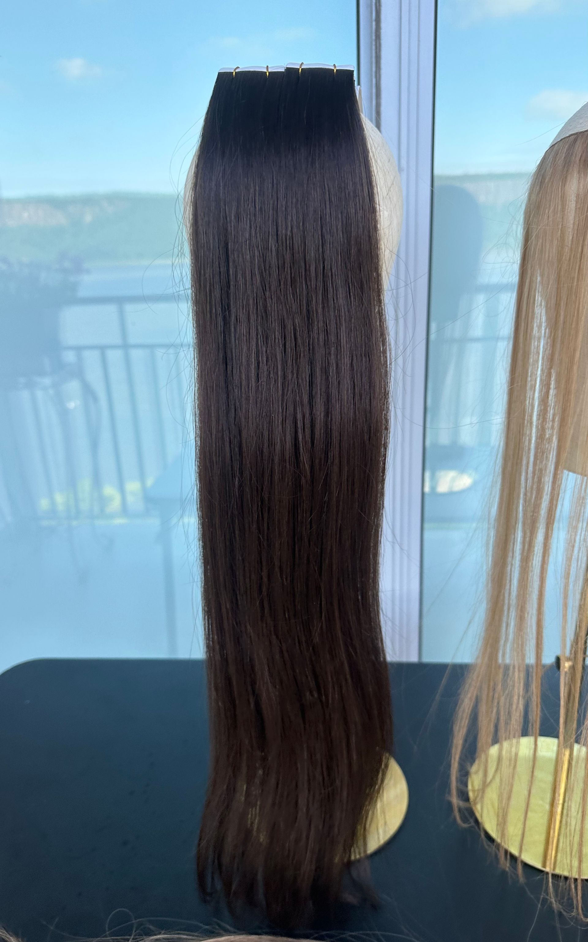 Premium Tape-in Extension, European 24”#2, Dark Brown, Double Drawn Natural Invisible Look, Thick or Thin, Russian Virgin Extension REMY