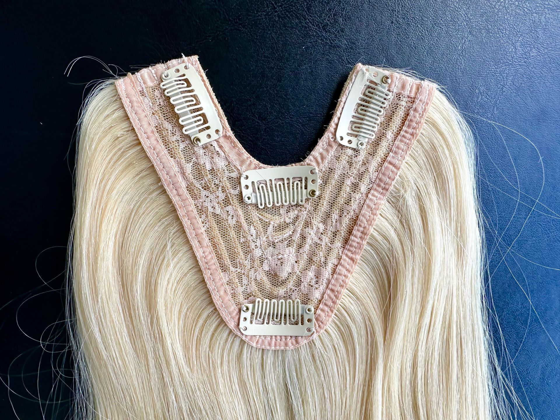 Invisi V-Shape Topper, One -Clip, European Blonde 18” inch, 12A, REMY, 100g, Medium Density